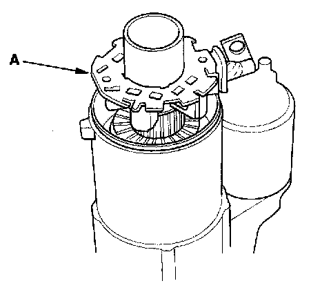 21. Place the brush holder assembly on the armature, then move the brush holder (A) down to the armature.