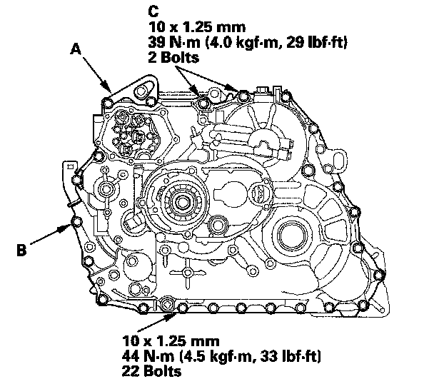 37. Install and tighten the two mounting bolts (C) to 39 Nm (4.0 kgf-m, 29 ft. lbs.). Keep the mounting bolts free of grease or oil.