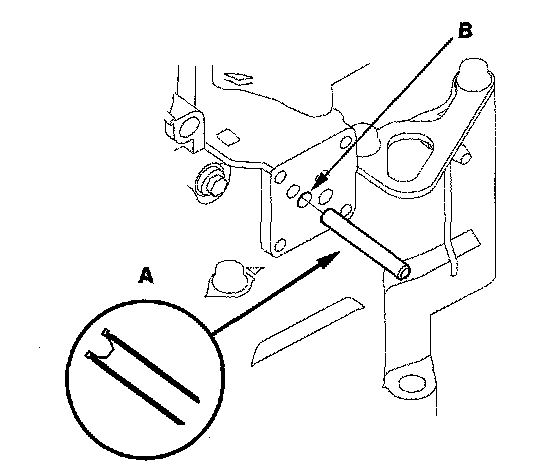 24. Turn the shift fork shaft (B) so the large chamfered hole is facing the fork bolt hole of the shift fork.