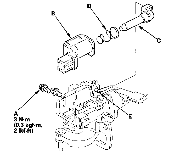 5. Apply silicone grease to the tip (E) of the shift lock extension, and install the shift lock solenoid by aligning the joint of the shift lock solenoid plunger with the tip of the shift lock extension.