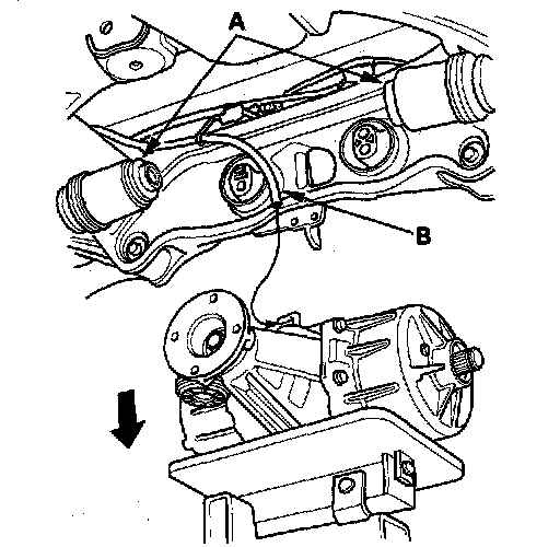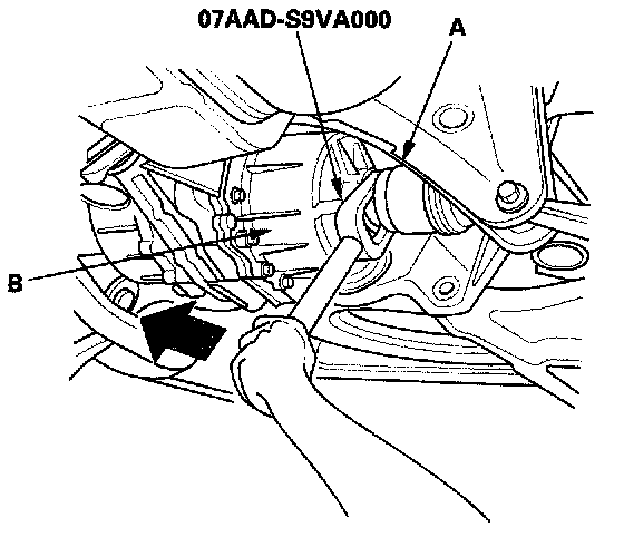 5. Using the special tool, pry out both inboard joints (A) from the differential (B).