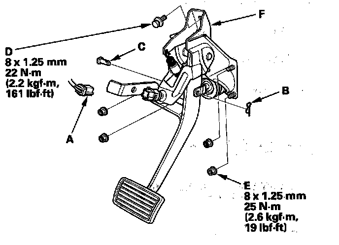 4. Remove the brake pedal with bracket (F).
