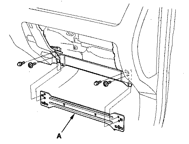3. Cut the plastic cross brace (A) in the glove box opening with diagonal cutters in the area shown, and discard it.