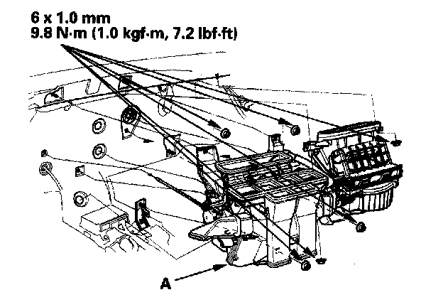 Heater Unit/Core ReplacementSRS components are located in this area. Review the SRS component locations, and the precautions and procedures before repairing or servicing.
