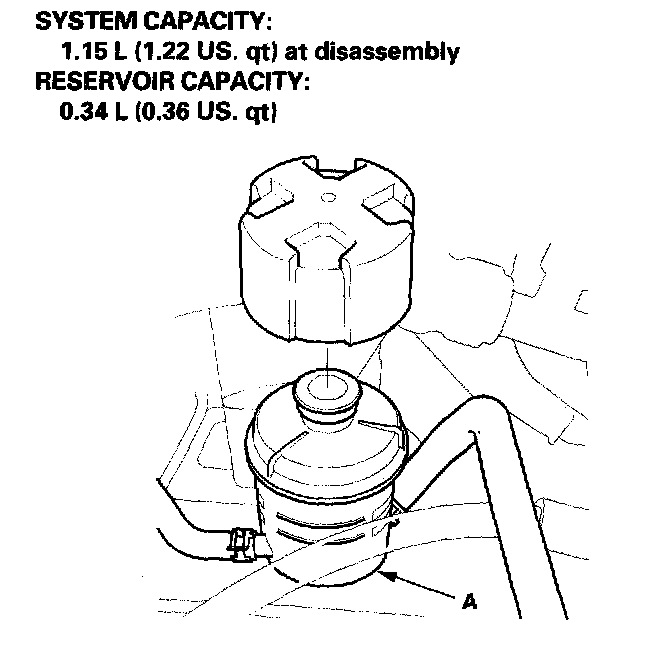 Fluid ReplacementCheck the reservoir (A) at regular intervals, and add the recommended fluid as necessary. Always use Honda Power Steering Fluid. Using any other type of power steering fluid or automatic transmission fluid can cause increased wear and poor steering in cold weather.