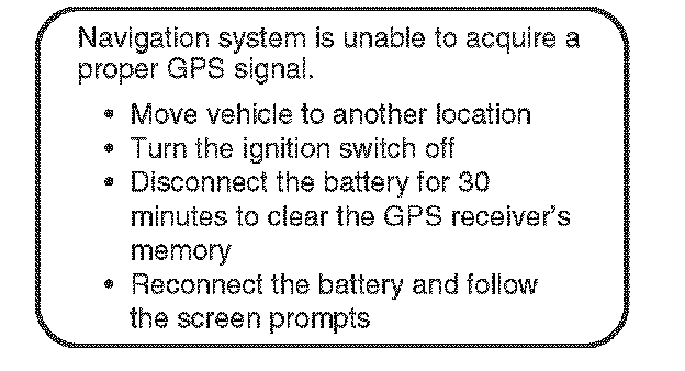 ^ The GPS antenna receives location information from orbiting satellites. Anything that blocks or interferes with the signal will affect accuracy. The GPS signal can be blocked or interfered with (vehicle position shown incorrectly on the map) by: