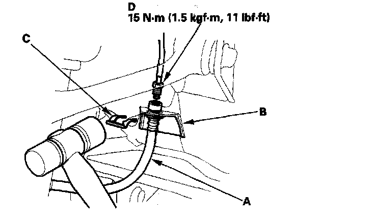 8. Connect the brake line (D) to the brake hose.