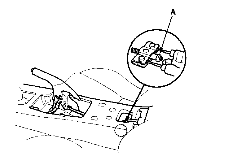 5. Tighten the adjusting nut (A) until the parking brakes drag slightly when the rear wheels are turned.