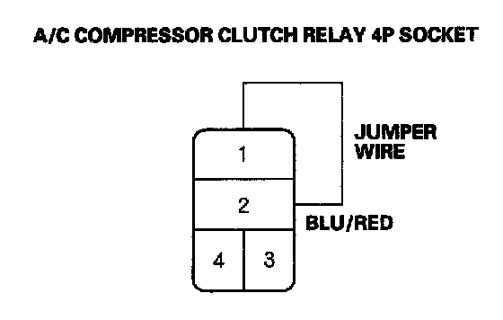 5. Connect the No. 1 and No. 2 terminals of the A/C compressor clutch relay 4P socket with a jumper wire.