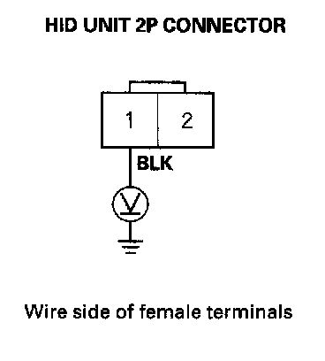 17. Check for continuity between the No. 1 terminal of the HID unit 2P connector and body ground.