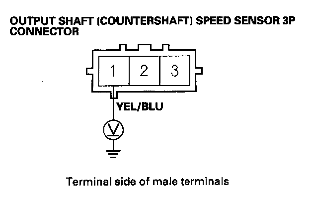5. Measure voltage between the output shaft (countershaft) speed sensor 3P connector No. 1 terminal and body ground.