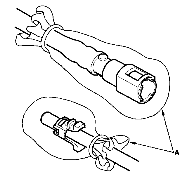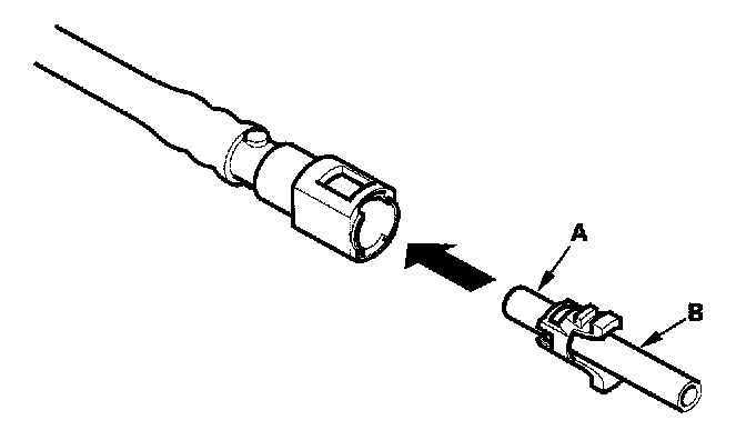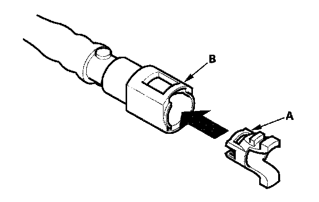 2. Insert a new retainer (A) into the connector (B) if the retainer is damaged, or after: