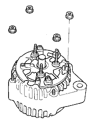 24. Reassemble the alternator in the reverse order of disassembly, and note these items: