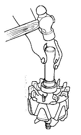 14. With a hammer and commercially available tools shown, install a new rear bearing on the rotor shaft.