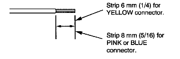 7. If you are using a yellow splice connector, strip about 6 mm (1/4 inch) of insulation off the ends of both wires. If you are using a pink or blue splice connector, strip off about 8 mm (5/16 inch) of insulation.
