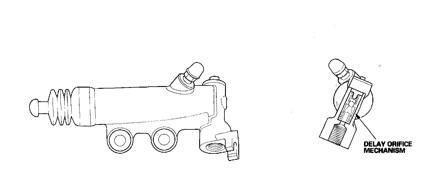 The delay orifice mechanism improves clutch operation by delaying the slave cylinder release speed when the clutch pedal is suddenly released. The delay orifice mechanism is built into the slave cylinder.