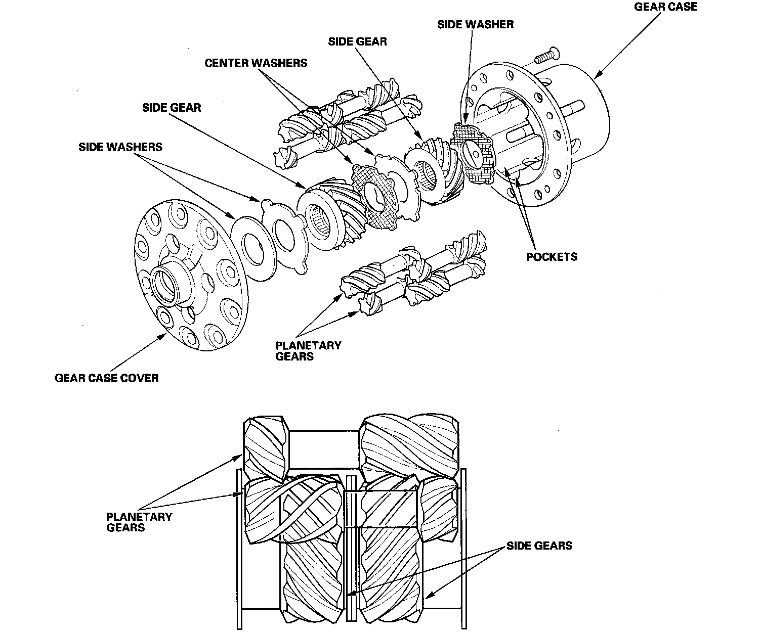 ^ The Torsen type LSD assembly consists of the two side gears, eight planetary gears, three side washers, two center washers, a gear case cover and a gear case.