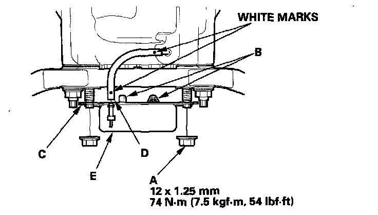 3. Disconnect the breather box tube (D) from the differential breather box (E) side.