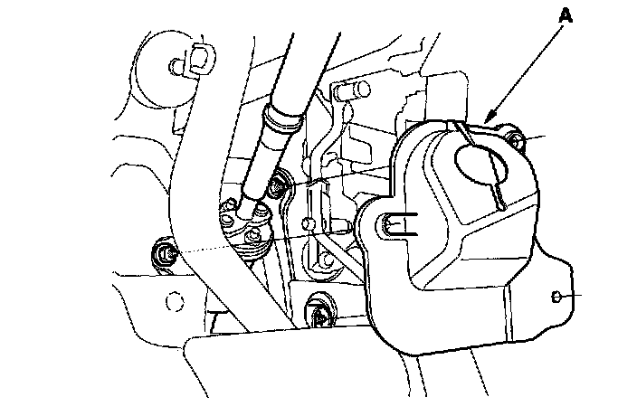 13. Remove the steering joint bolt (C), then disconnect the steering joint (D) from the pinion shaft.