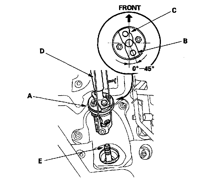 4. With the rack in the straight ahead driving position, cut the wire (D) and slip the lower end of the steering joint on to the pinion shaft (E).