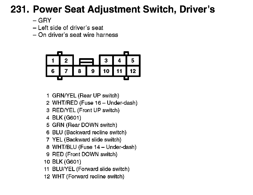 231. Power Seat Adjustment Switch, Driver's: