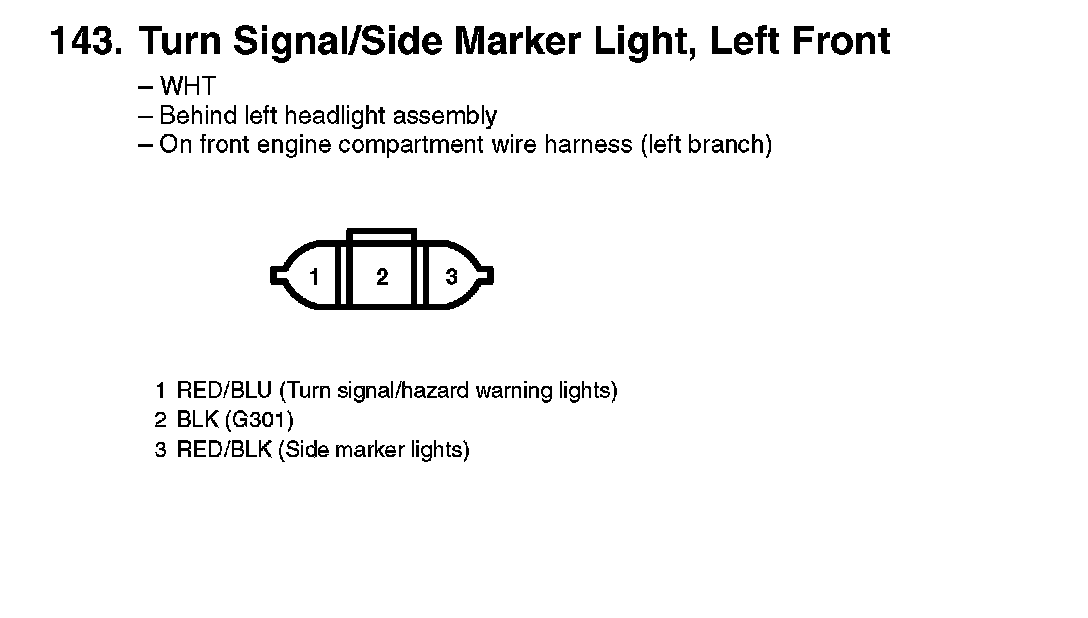 143. Turn Signal/Side Marker Light, Left Front: