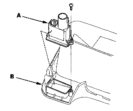 2. Remove the self-tapping screw and the in-car temperature sensor (A) from the instrument panel (B).