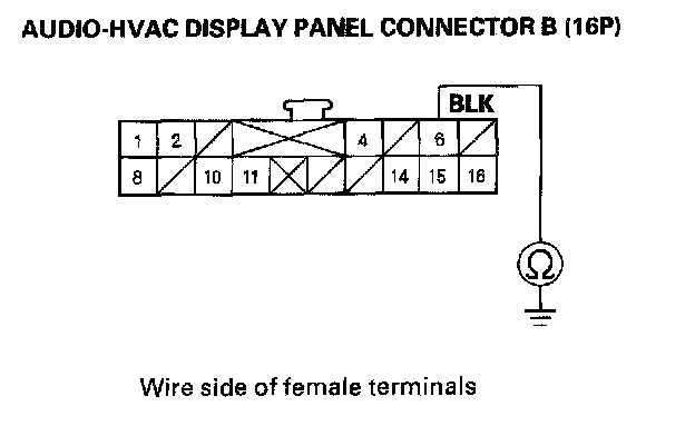 6. Check for continuity between audio-HVAC display panel connector B (16P) terminal No. 6 and body ground.