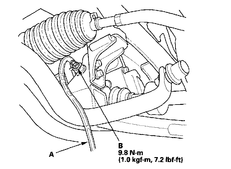 4. Install a rubber hose (A) on the drain bolt (B) located at the rear of the cylinder block, then loosen the drain bolt.