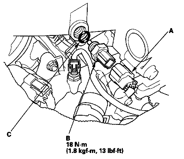Install the parts in the reverse order of removal with a new O-ring (C).