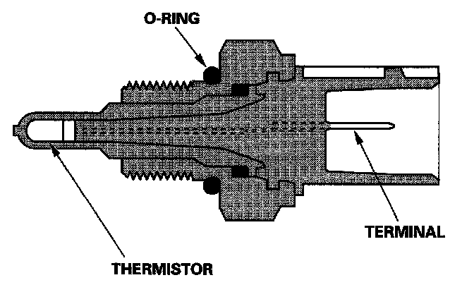 The ECT sensor 1 and 2 are temperature dependent resistors (thermistor). The resistance decreases as the engine coolant temperature increases.