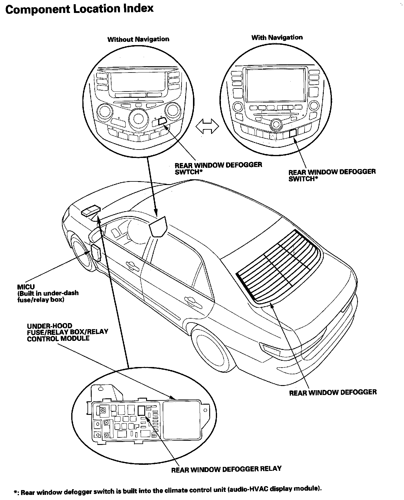 Rear Window Defogger Component Location Index: