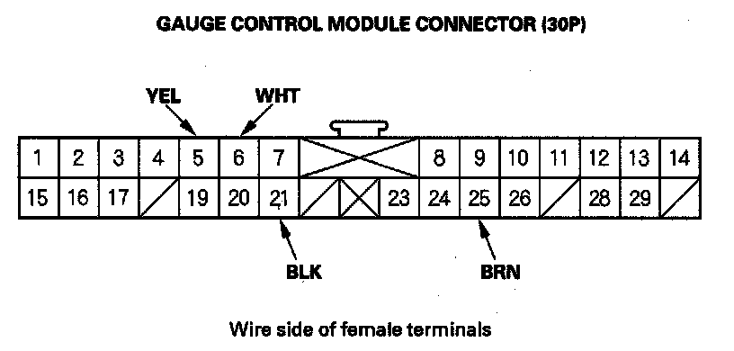 5. Disconnect the connector from the gauge control module, and make these input tests at the connector.