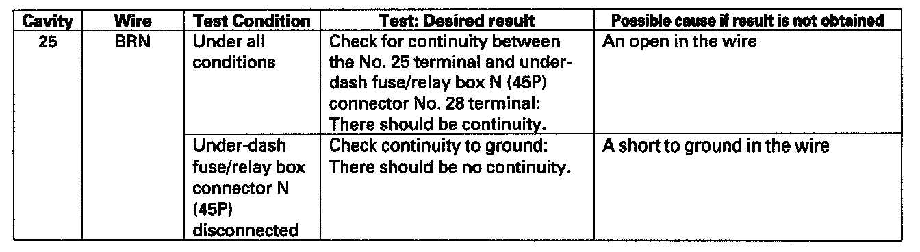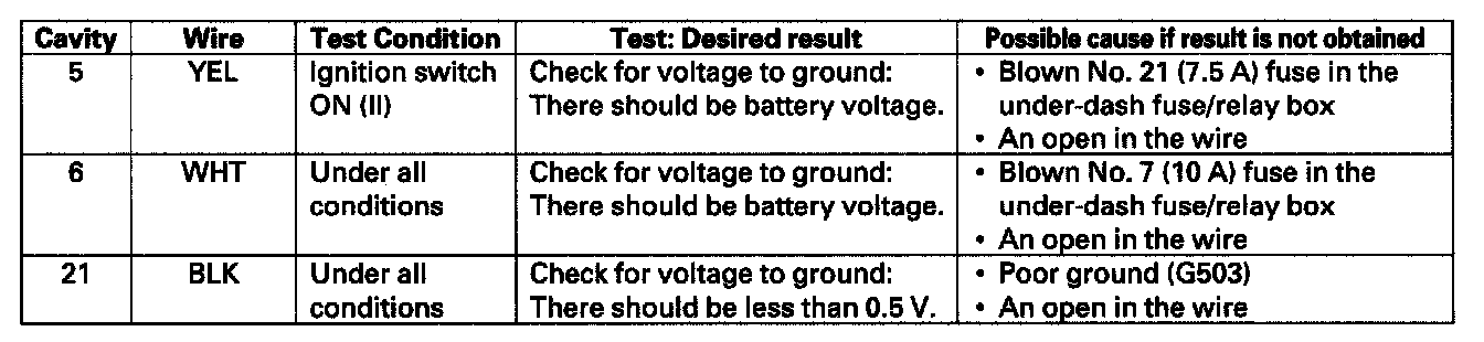 4. Reconnect the connector, and make these input tests at the connector.