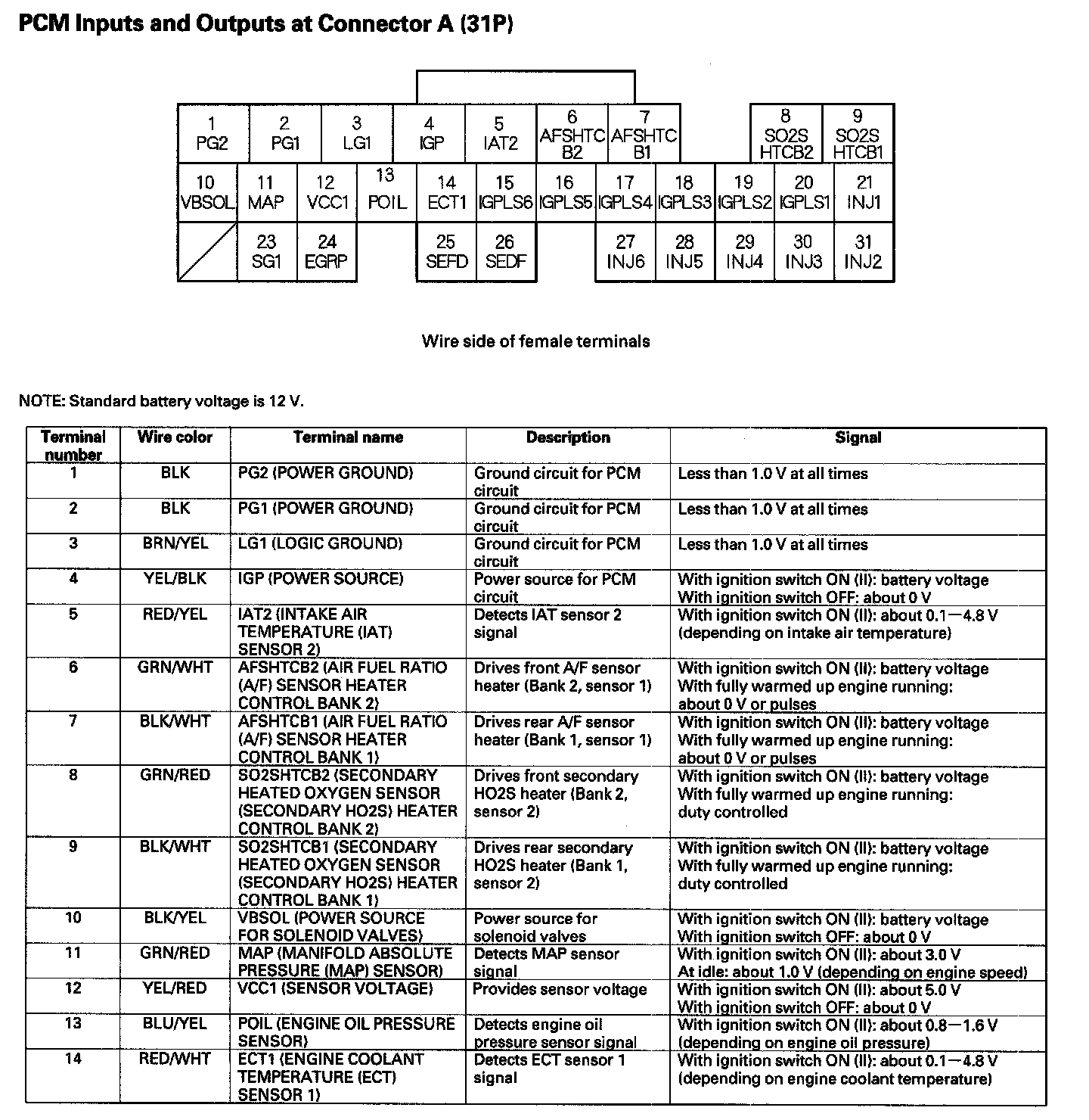 PCM Inputs And Outputs At Connector A (31P) Part 1: