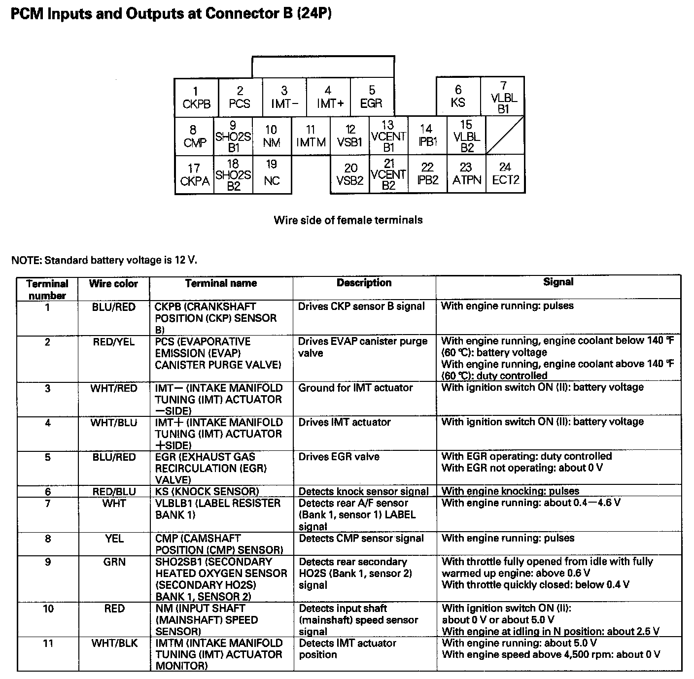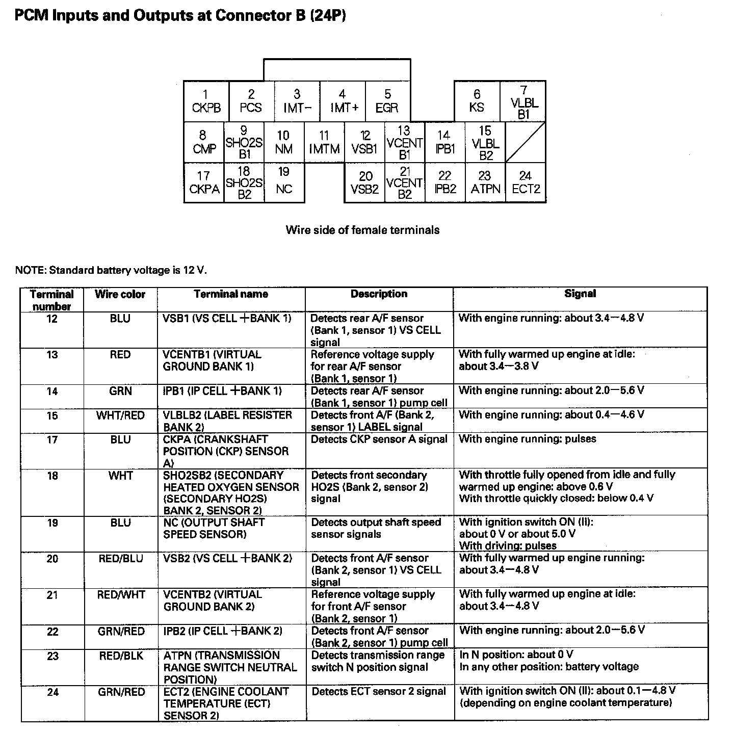 PCM Inputs And Outputs At Connector B (24P) Part 1: