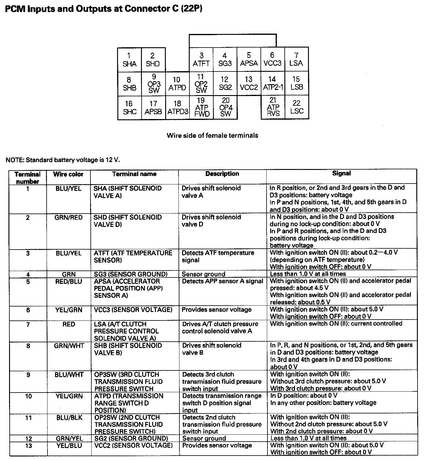 PCM Inputs And Outputs At Connector C (22P) Part 1: