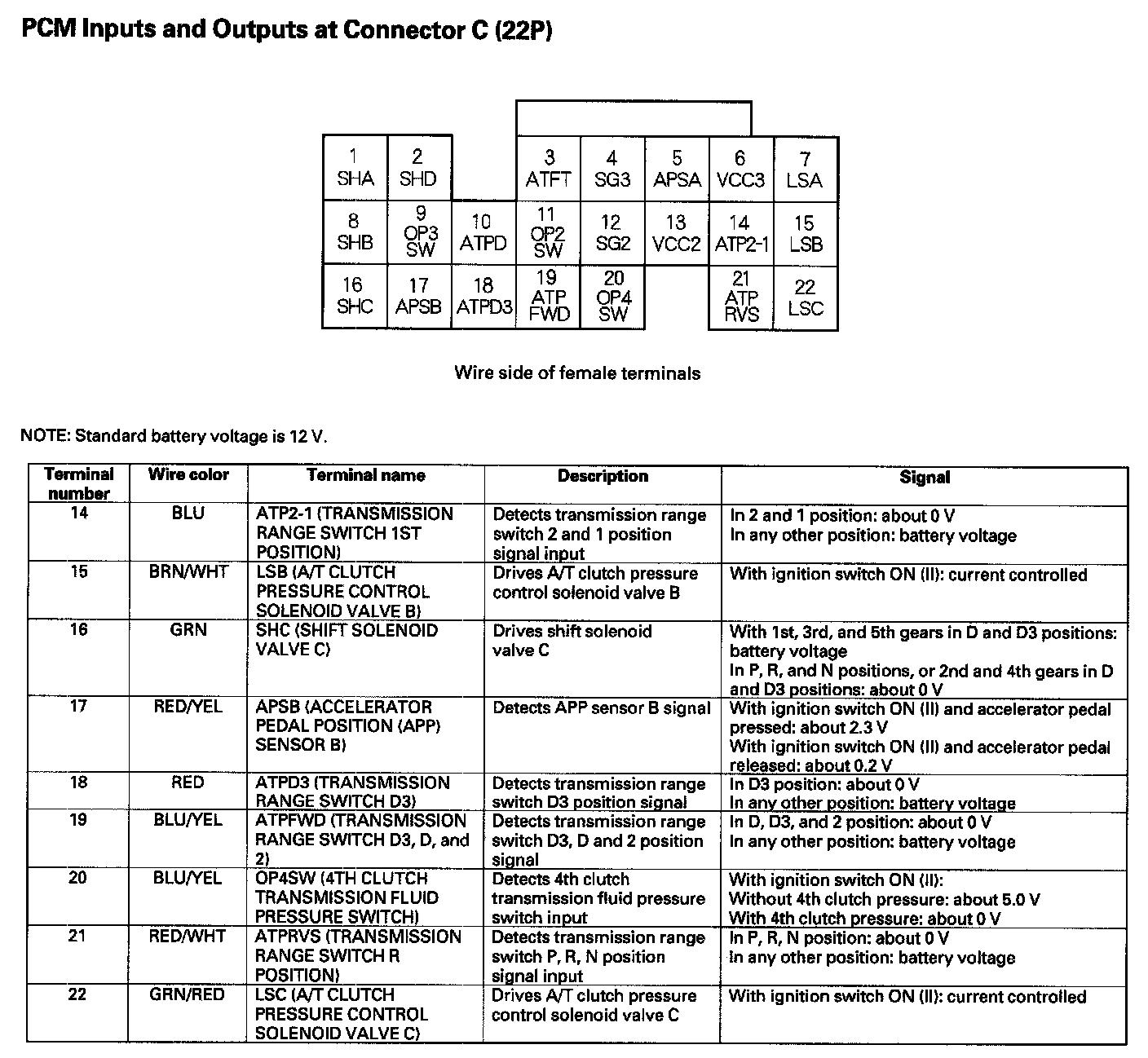 PCM Inputs And Outputs At Connector C (22P) Part 2: