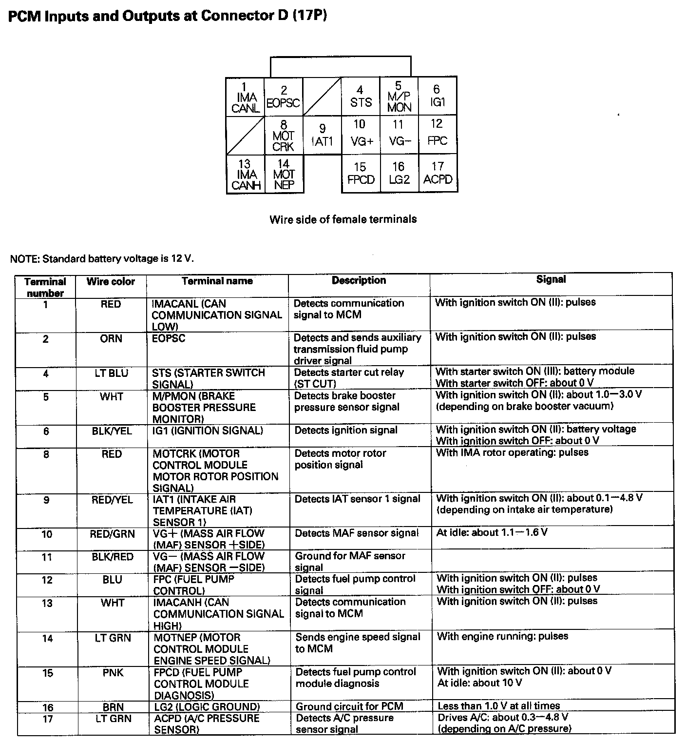 PCM Inputs And Outputs At Connector D (17P):