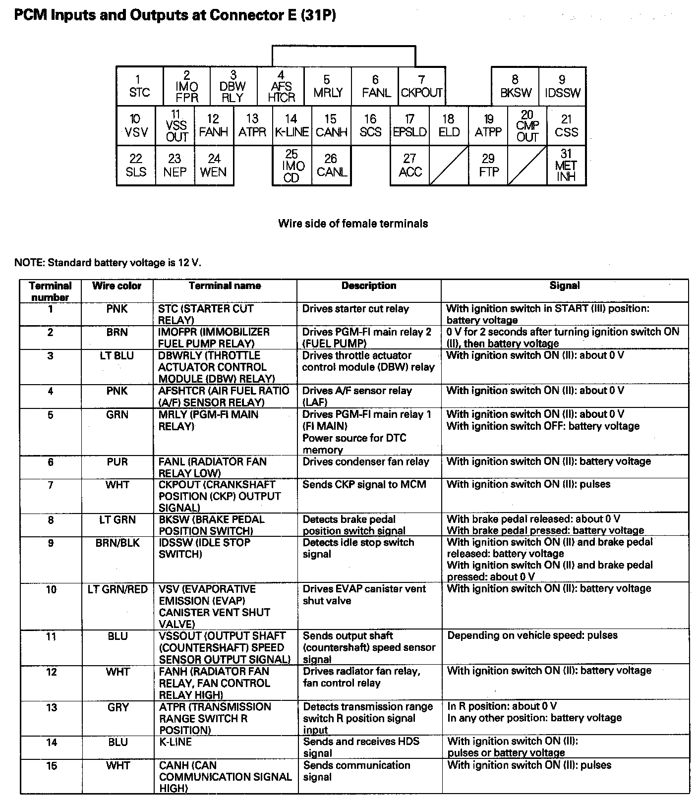 PCM Inputs And Outputs At Connector E (31P) Part 2: