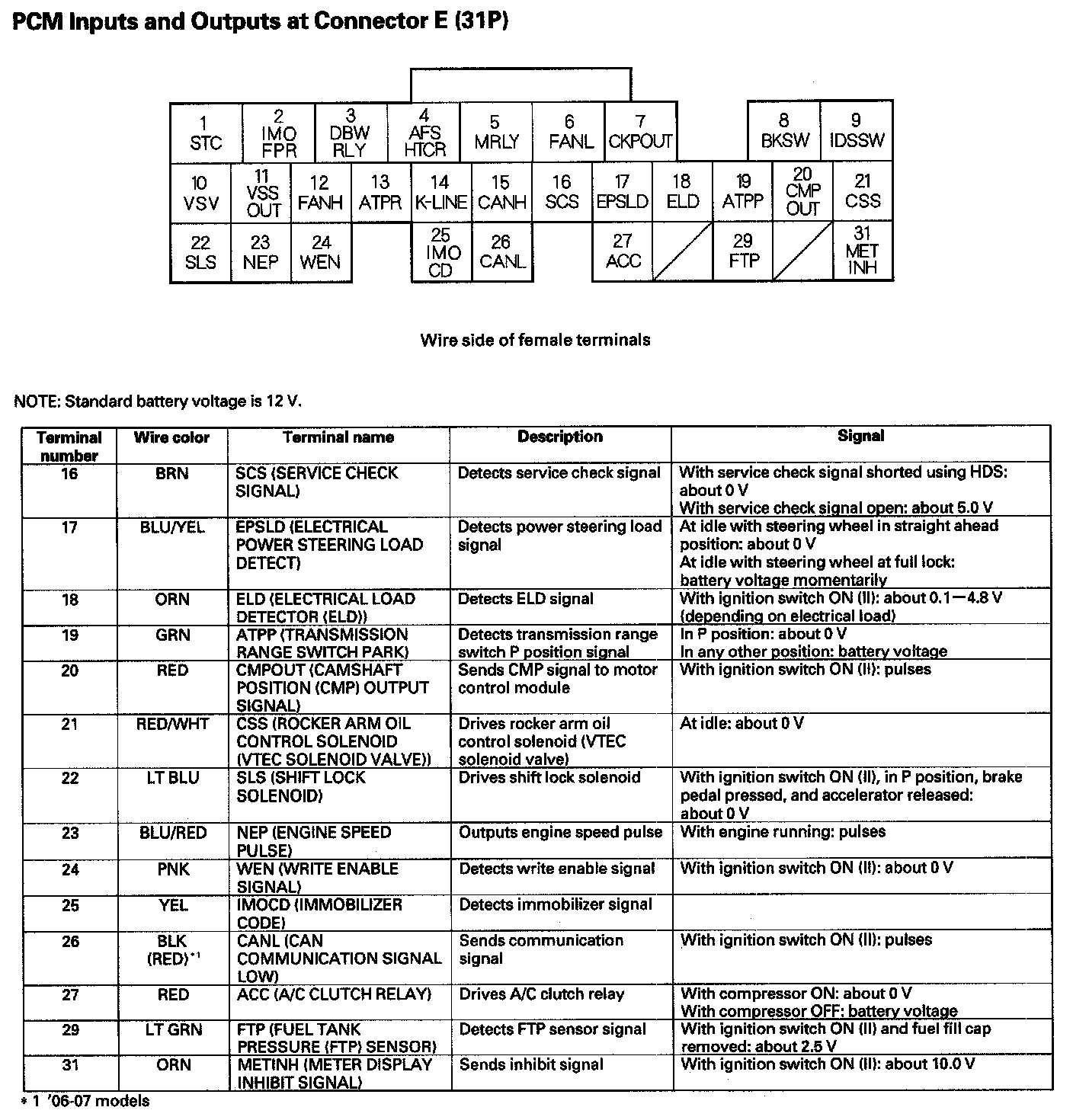 PCM Inputs And Outputs At Connector E (31P) Part 1: