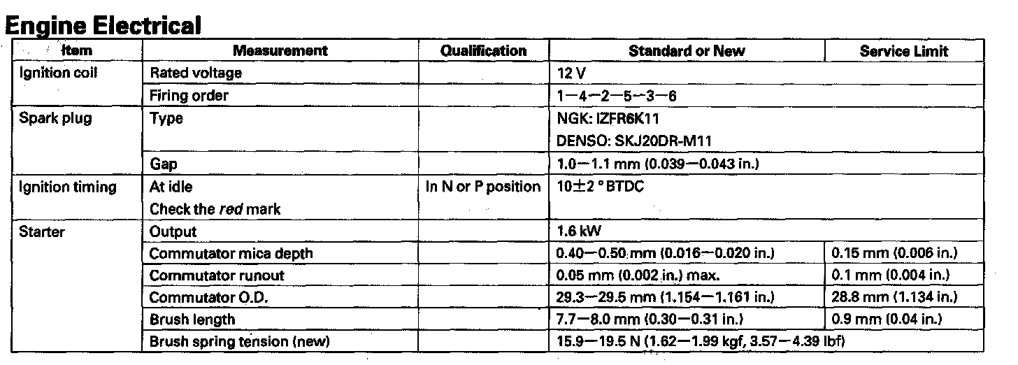 Starting and Charging: Specifications