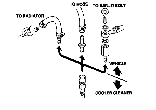4. Select the appropriate pair of fittings, and attach them to the radiator, to the hoses, or to the banjo bolts for flow through the ATF cooler cleaner.