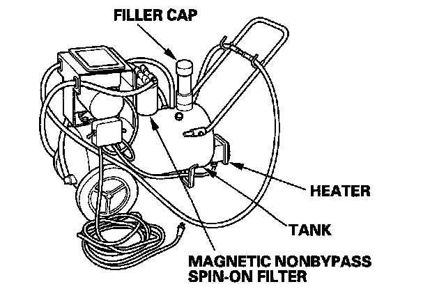NOTE: If the red indicator above the HEAT toggle switch comes on, the fluid level in the tank is too low for the tank heater to work (see step 1 of this procedure).