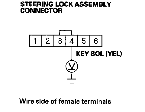 5. Check the voltage between steering lock assembly connector terminal No. 4 and body ground.