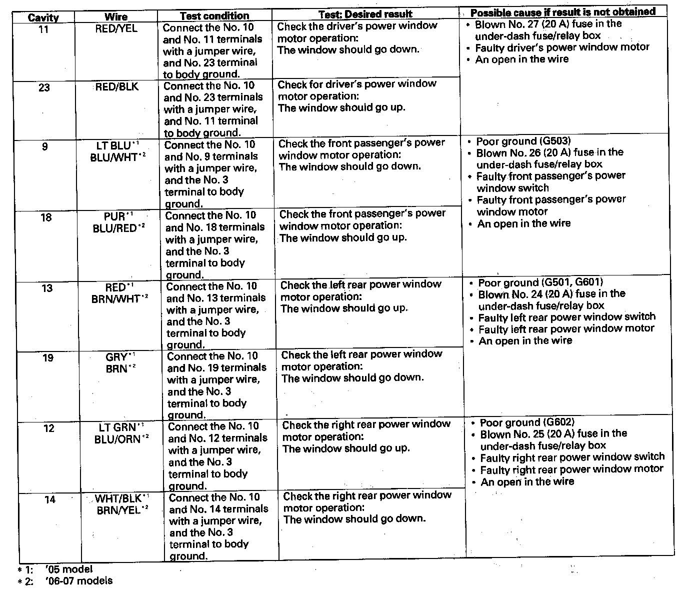 5. With the power window master switch still disconnected, make these input tests at the connector.