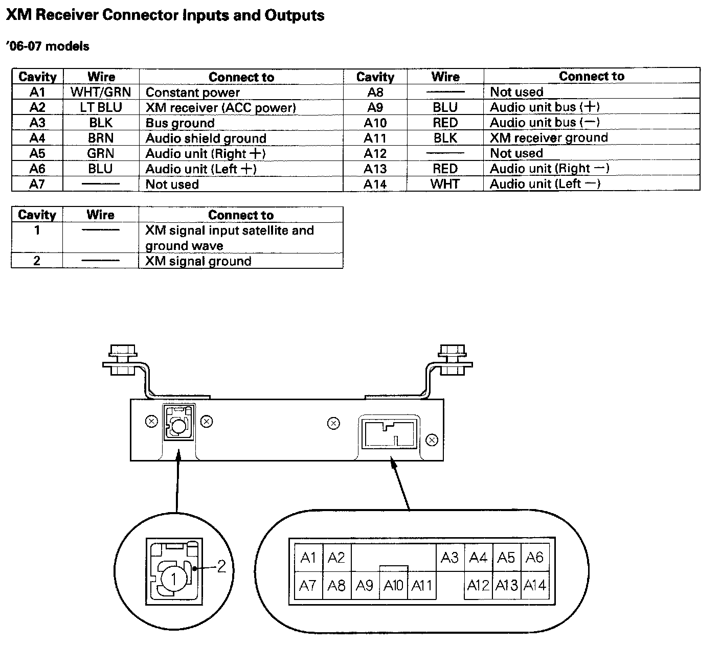 XM Receiver Connector Inputs and Outputs: