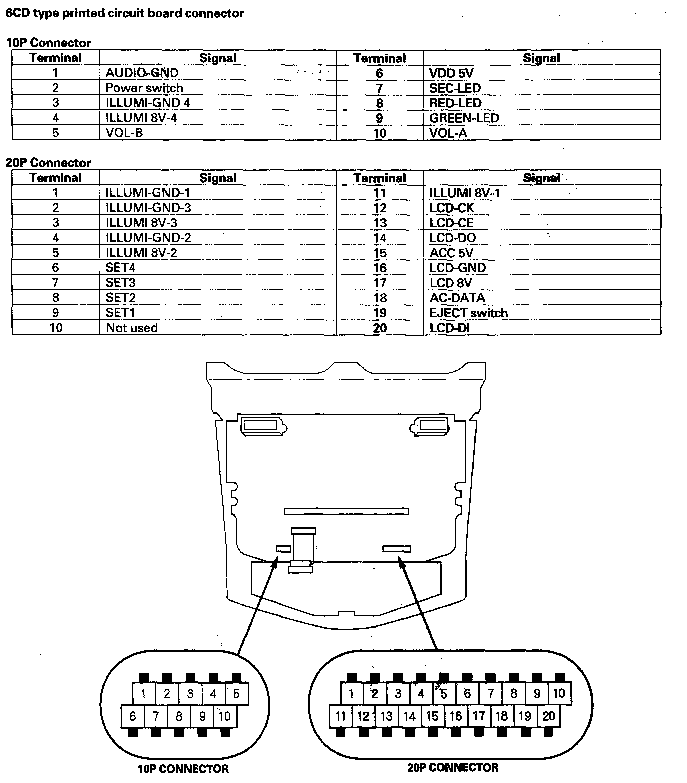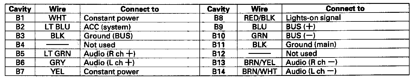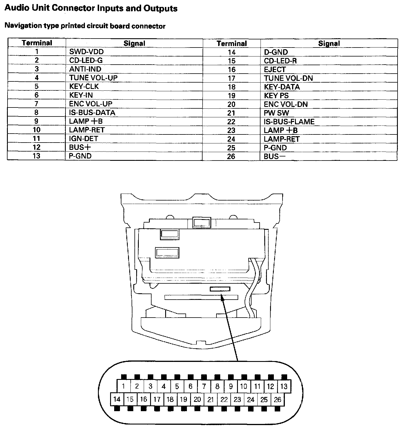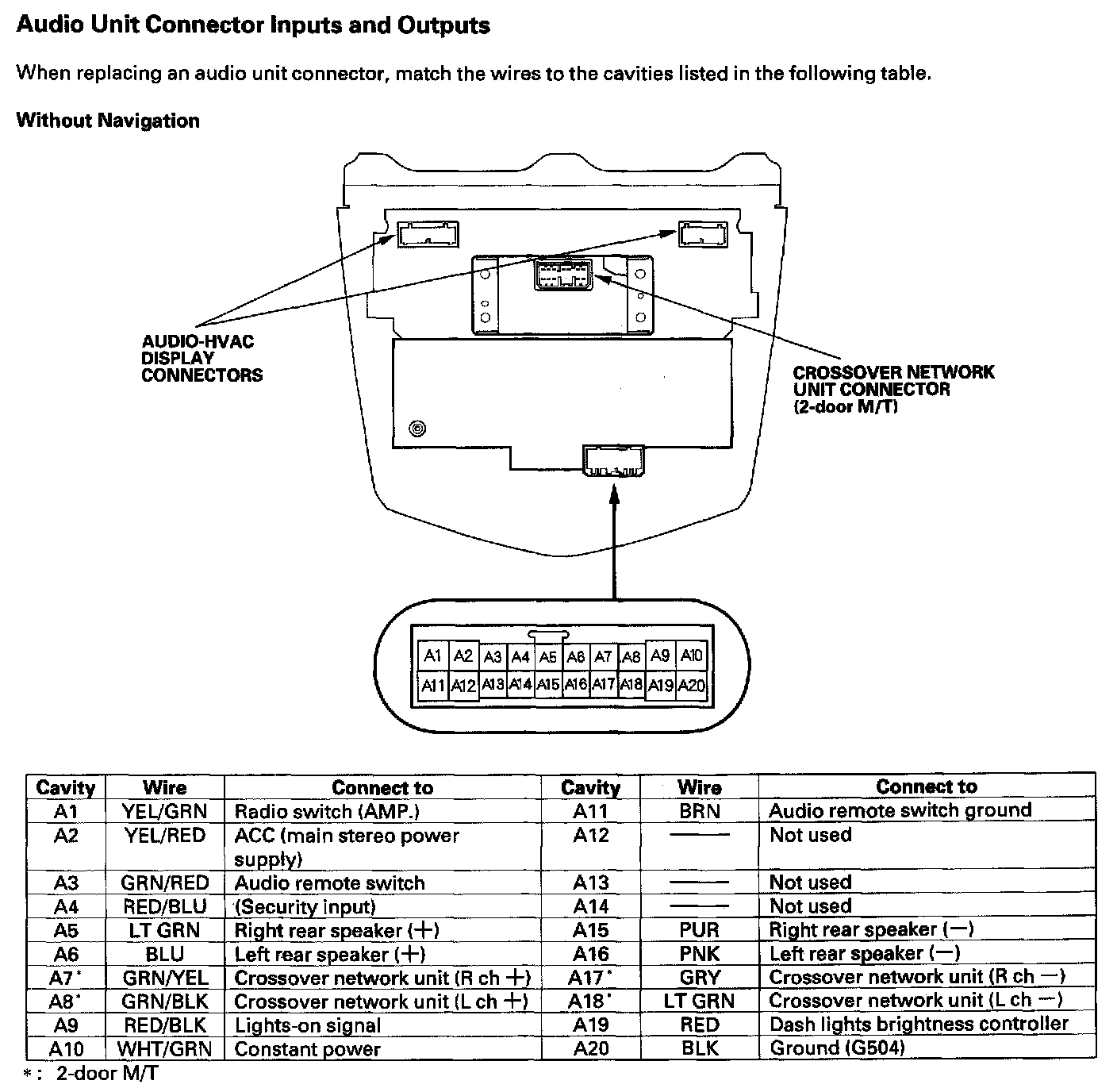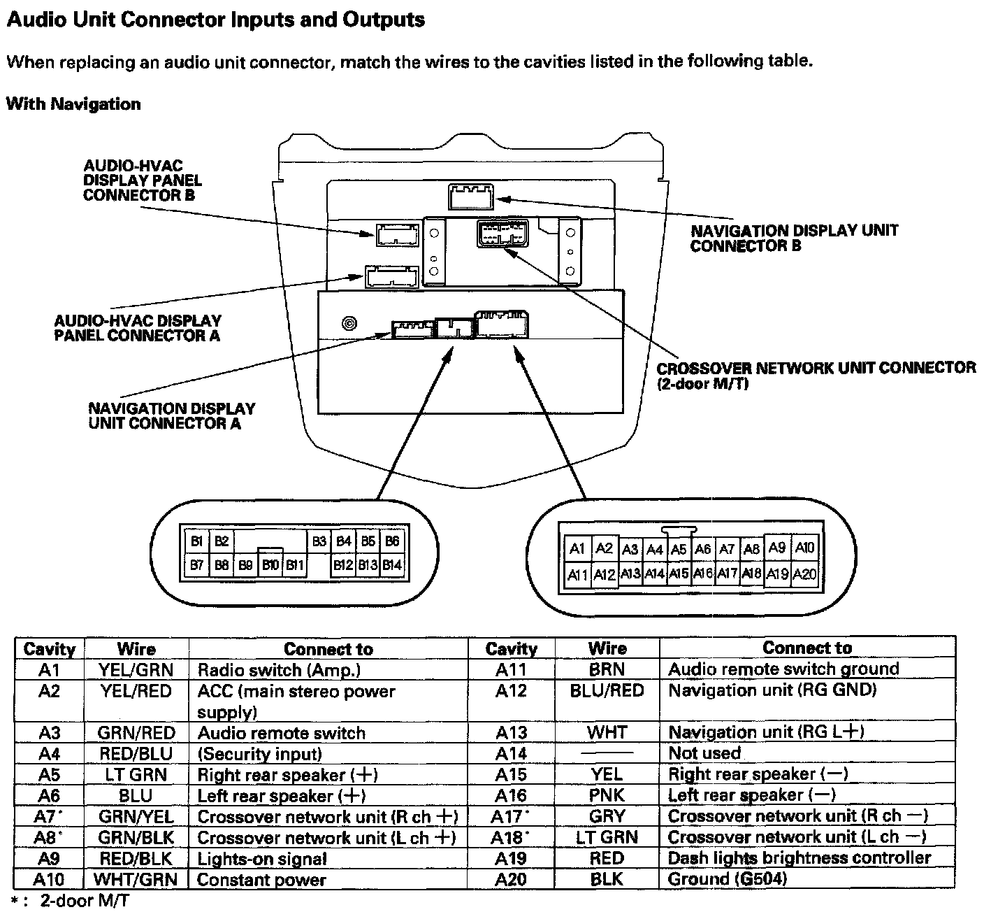 Audio-HVAC Subdisplay Unit Connector Inputs And Outputs: