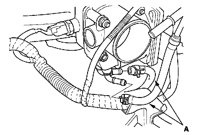 4. Install the water bypass hoses (A).