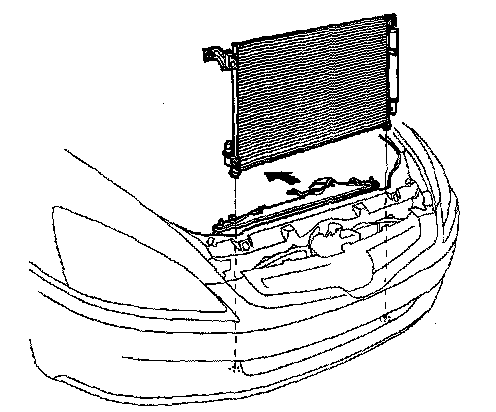 - Be careful not to damage the radiator or the A/C condenser fins when installing the A/C condenser.